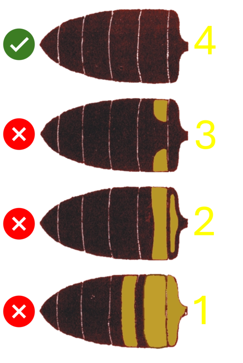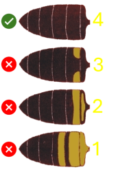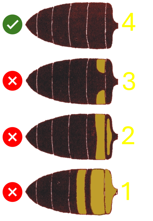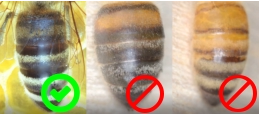 Farebný idex - hodnotenieKraňská včela „robotnica" má úzke dlhé končatiny, chitín je tmavý s častými výskytmi kožovito sfarbených okrajov alebo celého prvého tergitu bruška. Ochlpenie je husté a krátke.V rámci udržiavania čistého plemena včely kraňskej je neprípustné akékoľvek žlté sfarbenie tergitov robotnice.Pri bodovaní farebného extérieru sa v karte matky používa bodové hodnotenie podľa priloženej matice viď. obr. vľavo.